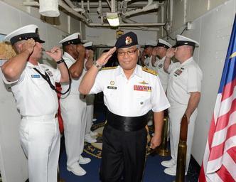 | Keywords: USS Frank Cable 130228-N-CO162-073.jpg en Rear Adm Dato' Pahlawan Mohammad Rosland Bin Omar commander of Naval Region Two of the Royal Malaysian Navy receives honors from side boys as he boards the submarine tender USS Frank Cable AS 40 Frank Cable is visiting Malaysia during a mission to strengthen ties with partners in the U S 7th Fleet area of responsibility U S Navy photo by Mass Communication Specialist 3rd Class Christopher Salisbury/Released 2013-02-28 Christopher Salisbury https //www dvidshub net/image/877804 130228-N-CO162-073 2013-03-02 02 51 KOTA KINABALU MY PD-USGov-Military-Navy USS Frank Cable AS-40 Images from DoD uploaded by Fæ |