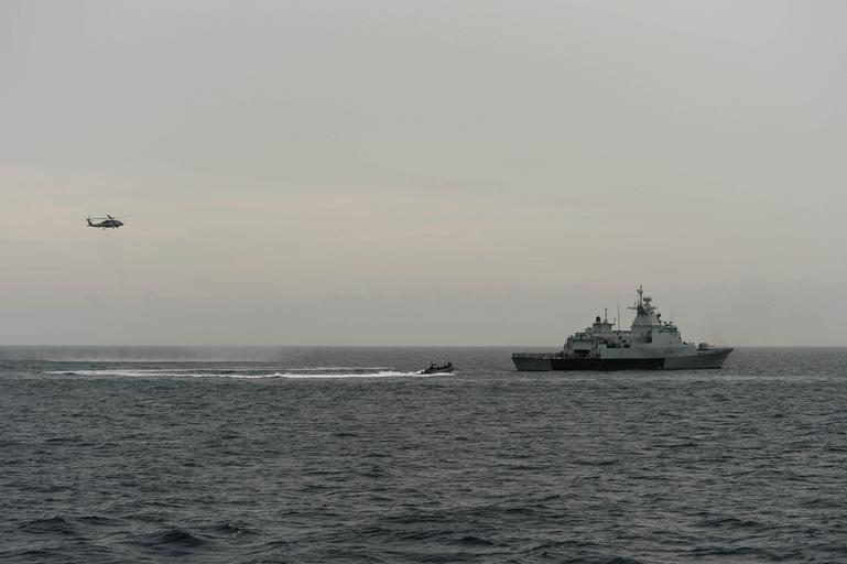 Keywords: USS Freedom operations 130904-N-JN664-141.jpg en A visit board search and seizure team from the littoral combat ship USS Freedom LCS 1 prepares to board the Royal Malaysian Navy patrol vessel KD Pahang 171 during a visit board search and seizure exercise as part of Southeast Asia Cooperation and Training SEACAT This is the 11th annual SEACAT exercise with navy liaison officers from Brunei Indonesia Malaysia the Philippines Singapore Thailand and the United States tracking vessels of interest in the multilateral maritime interdiction scenario U S Navy photo by Mass Communication Specialist 3rd Class Karolina A Oseguera/Released 2013-09-04 Seaman Apprentice Karolina Oseguera https //www dvidshub net/image/1011096 130904-N-JN664-141 2013-09-06 02 36 AT SEA PD-USGov-Military-Navy USS Freedom LCS-1 Images from DoD uploaded by Fæ |