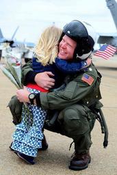 | Keywords: USS George H.W. Bush homecoming 141114-N-IS680-086.jpg en Cmdr Raymond Barnes executive officer of Strike Fighter Squadron VFA 87 holds his daughter during the squadron's homecoming at Naval Air Station Oceana VFA-87 along with other squadrons from Carrier Air Wing CVW 8 returned home after a nine-month deployment aboard the aircraft carrier USS George H W Bush CVN 77 U S Navy photo by Mass Communication Specialist 2nd Class Alysia R Hernandez/Released 2014-11-14 Petty Officer 2nd Class Alysia Hernandez https //www dvidshub net/image/1663480 141114-N-IS680-086 2014-11-18 22 40 VIRGINIA BEACH VA US 4 PD-USGov-Military-Navy People at Naval Air Station Oceana USS George H W Bush CVN-77 Images from DoD uploaded by Fæ |