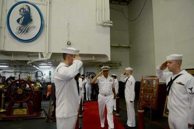 | Keywords: USS George Washington operations 130827-N-AU127-049.jpg en Japanese Rear Admiral Hiroyuki Kasui the commander of Escort Flotilla 1 is rendered honors as he passes through side boys during a visit aboard the aircraft carrier USS George Washington CVN 73 in Yokosuka Japan Aug 27 2013 The George Washington was underway in the U S 7th Fleet area of responsibility supporting maritime security operations and theater security cooperation efforts U S Navy photo by Mass Communication Specialist 2nd Class Shannon Heavin/Released 2013-08-27 Shannon Heavin https //www dvidshub net/image/1015881 130827-N-AU127-049 2013-09-11 23 41 USS GEORGE WASHINGTON CVN 73 JP PD-USGov-Military-Navy USS George Washington CVN-73 Images from DoD uploaded by Fæ |