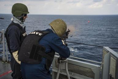| Keywords: USS Germantown crew-served weapons qualification shoot 141024-N-XM324-104.jpg en Gunner ™s Mate 2nd Class Andrew Mattson left from Snowflake Ariz supervises as Cryptologic Technician Technical 3rd Class Keaton Wade from Aquilla Texas fires an M240B machine gun during a live-fire exercise aboard the amphibious dock landing ship USS Germantown LSD 42 Germantown is part of the Peleliu Amphibious Ready Group PELARG14 commanded by Capt Heidi Agle and is conducting joint forces exercises in the U S 7th Fleet area of responsibility U S Navy photo by Mass Communication Specialist Seaman Patrick Dionne/Released 2014-10-24 Seaman Apprentice Patrick Dionne https //www dvidshub net/image/1628848 141024-N-XM324-104 2014-10-25 12 21 USS GERMANTOWN AT SEA PD-USGov-Military-Navy USS Germantown LSD-42 M-240 machine gun Images from DoD uploaded by Fæ |