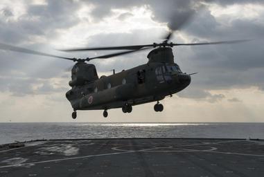 | Keywords: USS Germantown operations 141112-N-UD469-011.jpg en A CH-47 Chinook assigned to the Japanese Ground Self Defense Force JGSDF takes off from the flight deck of the amphibious dock landing ship USS Germantown LSD 42 during a personnel transfer for exercise Keen Sword Exercise Keen Sword is a bilateral field training exercise held biennially since 1986 The exercise is designed to increase the interoperability of U S Forces and the Japanese Self Defense Forces JSDF to effectively and mutually provide for the defense of Japan or respond to a regional crisis or contingency situation in the Asia-Pacific region Germantown is part of the Peleliu Amphibious Ready Group PELARG14 commanded by Capt Heidi Agle and is conducting joint forces exercises in the U S 7th Fleet area of responsibility U S Navy Photo by Mass Communication Specialist 2nd Class Amanda R Gray/Released 2014-11-11 Petty Officer 2nd Class Amanda Gray https //www dvidshub net/image/1658839 141112-N-UD469-011 2014-11-15 02 44 PHILIPPINE SEA PD-USGov-Military-Navy Kawasaki CH-47 USS Germantown LSD-42 Images from DoD uploaded by Fæ |