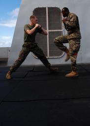 | Keywords: USS Green Bay action 121004-N-BB534-208.jpg en Cpl Jason Matney left and Sgt Nathaniel McDonald right spar during a martial arts training session aboard amphibious transport dock ship USS Green Bay LPD 20 Green Bay is part of the Peleliu Amphibious Ready Group currently underway on a deployment with amphibious assault ship USS Peleliu LHA 5 and amphibious dock landing ship USS Rushmore LSD 47 U S Navy Photo by Mass Communication Specialist 1st Class SW/AW Elizabeth Merriam 2012-10-04 Petty Officer 2nd Class Elizabeth Merriam https //www dvidshub net/image/678003 121004-N-BB534-208 2012-10-08 05 09 PACIFIC OCEAN PD-USGov-Military-Navy USS Peleliu LHA-5 USS Green Bay LPD-20 USS Peleliu LHA-5 USS Rushmore LSD-47 Images from DoD uploaded by Fæ |