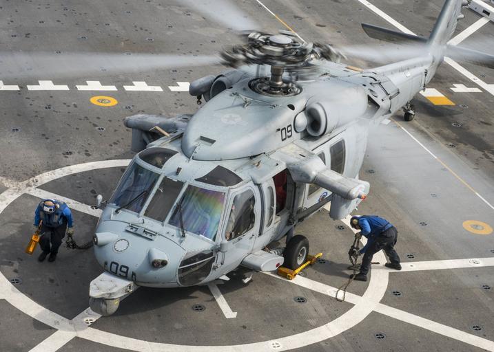 MAKE A MEME View Large Image Green Bay operations 150316-N-EI510-111.jpg en 150316-N-EI510-111 EAST CHINA SEA March 16 2015 Sailors remove chalks and chains form an MH-60S Seahawk Helicopter attached to the Island Knights of the Helicopter Sea Combat Squadron HMS ...