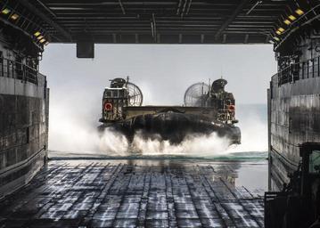 | Keywords: USS Green Bay operations 150328-N-KE519-082.jpg en 150328-N-KE519-082 WATERS TO THE EAST OF THE KOREAN PENINSULA March 28 2015 - Landing Craft Air Cushion LCAC 29 attached to Naval Beach Unit NBU 7 departs the well deck of the amphibious transport dock ship USS Green Bay LPD 20 U S Sailors and Marines from the Bonhomme Richard Amphibious Ready Group ARG and the 31st Marine Expeditionary Unit MEU are participating in the Korean Marine Exchange Program KMEP in the Republic of Korea ROK with the ROK Marine Corps and Navy The Bonhomme Richard ARG is comprised of the amphibious assault ship USS Bonhomme Richard LHD 6 the amphibious transport dock ship USS Green Bay LPD 20 the Whidbey Island-class amphibious dock landing ship USS Ashland LSD 48 and the embarked 31st MEU U S Navy photo by Mass Communication Specialist 3rd Class Edward Guttierrez III/Released 2015-03-28 Petty Officer 3rd Class Edward Guttierrez III https //www dvidshub net/image/1844384 150328-N-KE519-082 2015-03-30 02 30 USS GREEN BAY WATERS TO THE EAST OF THE KOREAN PENINSULA AT SEA PD-USGov-Military-Navy 31st Marine Expeditionary Unit USS Ashland LSD-48 USS Bonhomme Richard LHD-6 USS Green Bay LPD-20 Images from DoD uploaded by Fæ |