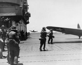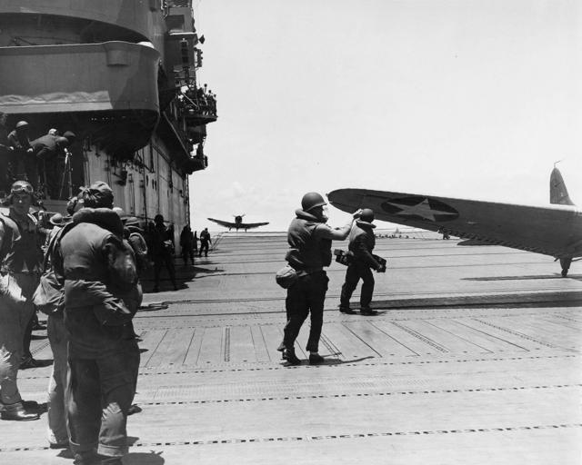 | Keywords: USS Hornet island SBD Midway.jpg A U S Navy Douglas SBD-3 Dauntless of bombing squadron VB-8 or scouting squadron VS-8 landing on the aircraft carrier USS Hornet CV-8 during the Battle of Midway 4 June 1942 Note the personnel wearing battle gear and the pilot in full flight gear including leather helmet Mae West and flight suit VB-8 and VS-8 did not locate the Japanese fleet during operations on 4 June 1942 losing six aircraft between them However on 6 June the squadrons participated in attacks against the Japanese cruisers Mogami and Mikuma U S Navy National Museum of Naval Aviation photo No 1996 253 649 http //collections naval aviation museum/emuwebdoncoms/pages/doncoms/Display php irn 16036018 QueryPage 2FQuery php 1942-06-04 U S Navy PD-USGov-Military-Navy Douglas SBD Dauntless Aboard USS Hornet CV-8 Battle of Midway US forces Flight suits Soft flight helmets |