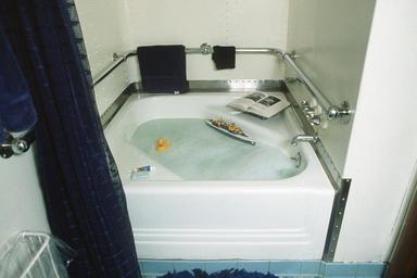 | Keywords: USS Iowa (BB-61) bathtub DN-ST-86-02543.JPG The bathtub on the battleship USS Iowa BB-61 It was installed as a convenience for President Franklin D Roosevelt when he crossed the Atlantic Ocean to Casablanca Morocco on the first leg of the trip to Tehran Iran to meet with British Prime Minister Winston Churchill and Soviet leader Joseph Stalin High resolution download from http //www dodmedia osd mil/DVIC_View/Still_Details cfm SDAN DNST8602543 JPGPath /Assets/Still/1986/Navy/DN-ST-86-02543 JPG DefenseImagery Still Asset Detail for DNST8602543 1984-12-01 PH1 Jeff Hilton PD-USGov-Military-Navy Files by User BrokenSphere Bathtubs Grab bars Aboard USS Iowa BB-61 |
