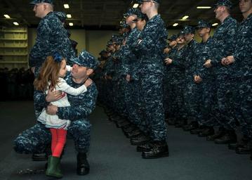 | Keywords: USS John C. Stennis (CVN 74) operations 151209-N-BR087-012.jpg en 151209-N-BR087-012 BREMERTON Wash Dec 9 2015 - Machinist's Mate 1st Class John Rasmussen from Sacramento Calif hugs his daughter Lillian during a frocking ceremony in USS John C Stennis' CVN 74 hangar bay Stennis' crew is currently in port training for future deployments U S Navy photo by Mass Communication Specialist Seaman Apprentice Cole C Pielop /Released <br>Unit USS John C Stennis CVN 74 2015-12-09 Seaman Apprentice Cole Pielop https //www dvidshub net/image/2323693/uss-john-c-stennis-cvn-74-operations 151209-N-BR087-012 2015-12-09 16 23 BREMERTON WA US PD-USGov-Military-Navy USS John C Stennis CVN-74 Images from DoD uploaded by Fæ |