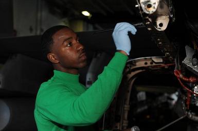 | Keywords: USS John C. Stennis activity 130119-N-QI595-006.jpg en Aviation Machinist Mate 3rd Class Undre Howard from Washington Port Ill applies sealant to prevent corrosion and water entry on an F/A-18C Hornet from the Warhawks of strike fighter squadron 14 in the hangar bay of the aircraft carrier USS John C Stennis 74 John C Stennis is deployed to the U S 5th Fleet area of responsibility conducting maritime security operations theater security cooperation efforts and support missions for Operation Enduring Freedom 2013-01-19 VFA https //www dvidshub net/image/817387 130119-N-QI595-006 2013-01-20 15 06 U S 5TH FLEET AREA OF RESPONSIBILITY PD-USGov-Military-Navy F/A-18C Hornet Operation Enduring Freedom Images from DoD uploaded by Fæ |