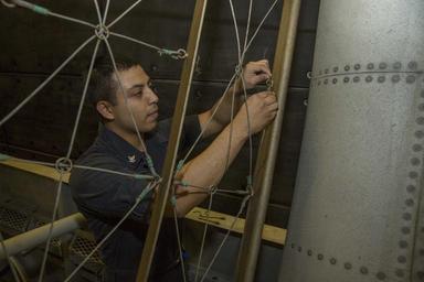 | Keywords: USS Kearsarge 151231-N-KW492-070.jpg en 151231-N-KW492-070 ARABIAN GULF Dec 31 2015 Hull Maintenance Technician 3rd Class Oscar Avilez from Tonasket Wash fixes a foreign object damage FOD screen on a landing craft air cushion LCAC in the well deck of the amphibious assault ship USS Kearsarge LHD 3 Kearsarge is the flagship for the Kearsarge Amphibious Ready Group ARG and with the embarked 26th Marine Expeditionary Unit MEU is deployed in support of maritime security operations and theater security cooperation efforts in the U S 5th Fleet area of operations U S Navy photo by Mass Communication Specialist Seaman Apprentice Ryre Arciaga/Released <br>Unit USS Kearsarge LHD 3 2015-12-31 Ryre Arciaga https //www dvidshub net/image/2346943/uss-kearsarge 151231-N-KW492-070 2016-01-02 11 17 ARABIAN GULF PERSIAN GULF PD-USGov-Military-Navy 26th Marine Expeditionary Unit USS Kearsarge LHD-3 Images from DoD uploaded by Fæ |