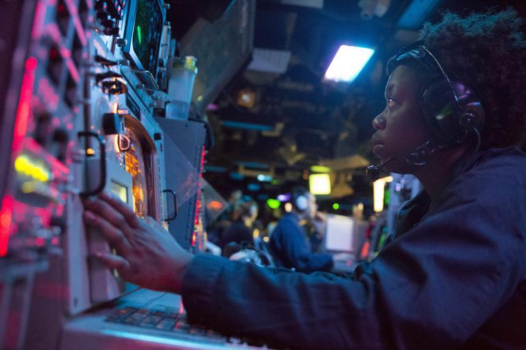| Keywords: USS Kearsarge ARG-MEUEX 150627-N-XD363-009.jpg en 150627-N-XD363-009 ATLANTIC OCEAN Operations Specialist Seaman Aisha Williamson tracks surface contacts on a computer console display aboard the amphibious assault ship USS Kearsarge The Kearsarge Amphibious Ready Group and the 26th Marine Expeditionary Unit are participating in ARG/MEUEX a scenario-based amphibious integration exercise in preparation for a future deployment 2015-06-27 June 27 2015 https //www dvidshub net/image/2035407 150627-N-XD363-009 2015-06-29 11 17 USS KEARSARGE ATLANTIC OCEAN PD-USGov-Military-Navy 26th Marine Expeditionary Unit Images from DoD uploaded by Fæ |