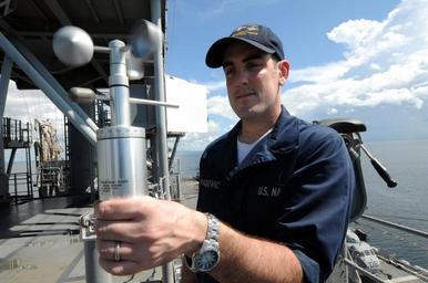 | Keywords: USS Kearsarge serves as primary platform for Continuing Promise 2008 DVIDS126497.jpg en Aerographer's mate Airman Matt Palkovic assigned to Strike Group Oceanographic Team Norfolk embarked aboard the amphibious assault ship USS Kearsarge measures wind speed and direction with a handheld anemometer Kearsarge is the primary platform for the Caribbean phase of Continuing Promise 2008 an equal-partnership mission involving the United States Canada the Netherlands Brazil Nicaragua Colombia Dominican Republic Trinidad and Tobago and Guyana 2008-10-28 Petty Officer 1st Class Emmitt Hawks Jr https //www dvidshub net/image/126497 081028-N-+++++-006 2008-11-05 04 14 CARIBBEAN SEA AT SEA PD-USGov-Military-Navy USS Kearsarge LHD-3 Images from DoD uploaded by Fæ |