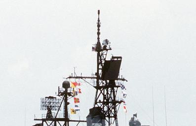 | Keywords: USS MacDonough (DDG-39) radar.jpg Radar arangement of the U S Navy guided missile destroyer USS MacDonough DDG-39 in 1984 left to right SPS-37 TACAN URN-20 SPS-10 SPS-48 Mk 68 gun director with SPG-53 radar http //www defenseimagery mil U S DefenseImagery photo VIRIN http //www dodmedia osd mil/DVIC_View/Still_Details cfm SDAN DNST9001195 JPGPath /Assets/1990/Navy/DN-ST-90-01195 JPG DN-ST-90-01195 cropped 1984-06-14 PH2 Paul Erickson USN complete image at Image USS MacDonough DDG-39 1984 jpg PD-USGov-Military-Navy USS Macdonough DDG-39 Ship radars of the United States Navy AN/SPS-37 AN/SPS-48 |