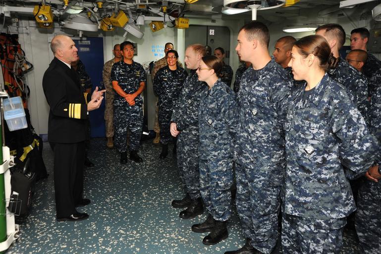 | Keywords: USS Makin Island participates in San Francisco Fleet Week 121005-N-UE944-012.jpg  en Vice Adm Matthew Nathan surgeon general of the Navy and chief of the Navy's Bureau of Medicine and Surgery meets with medical department sailors aboard the amphibious assault ship USS Makin Island LHD 8 during San Francisco Fleet Week 2012 SFFW 12 is scheduled from Oct 3-8 and brings more than 2 500 sailors Marines and Coast Guardsmen from four ships to the city of San Francisco in order to highlight the personnel technology and capabilities of the sea services The U S Navy has a 237-year heritage of defending freedom and projecting and protecting U S interests around the globe Join the conversation on social media using warfighting U S Navy photo by Mass Communication Specialist 1st Class Andrew D Wiskow 2012-10-05 Andrew Wiskow https //www dvidshub net/image/719508 121005-N-UE944-012 2012-10-11 05 37 SAN FRANCISCO CA US PD-USGov-Military-Navy USS Makin Island LHD-8 Images from DoD uploaded by Fæ Matthew L Nathan |