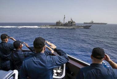 | Keywords: USS Mason salutes USS San Jacinto. (10328456366).jpg U S 5TH FLEET AREA OF RESPONSIBILITY Oct 12 2013 Cmdr Wilson Marks commanding officer of the guided-missile destroyer USS Mason DDG 87 bottom center renders passing honors to the guided-missile cruiser USS San Jacinto CG 56 The aircraft carrier USS Nimitz CVN 68 top right guards the formation Mason is deployed to the U S 5th Fleet area of responsibility conducting maritime security operations and theater security cooperation efforts U S Navy photo by Mass Communication Specialist 2nd Class Rob Aylward/Released 131012-N-PW661-005 Join the conversation http //www navy mil/viewGallery asp www navy mil/viewGallery asp http //www facebook com/USNavy www facebook com/USNavy http //www twitter com/USNavy www twitter com/USNavy http //navylive dodlive mil navylive dodlive mil http //pinterest com pinterest com https //plus google com plus google com http //www flickr com/photos/usnavy/10328456366/ USS Mason salutes USS San Jacinto 2013-10-12 04 01 http //www flickr com/people/56594044 N06 Official U S Navy Page from United States of America MC2 Rob Aylward/U S Navy Attribution License IPTC Caption-Abstract U S Navy photo PD-USGov-Military-Navy Official U S Navy Imagery http //flickr com/photos/56594044 N06/10328456366 2014-04-03 13 29 22 cc-by-2 0 Files uploaded by Russavia Files uploaded by Russavia Naval officers of the United States Salutes USS Mason DDG-87 General views of USS San Jacinto CG-56 General views of USS Nimitz CVN-68 |
