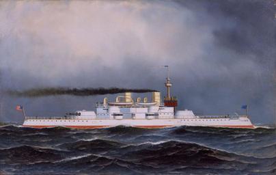 | Keywords: USS Massachusetts (BB-2), Antonio Jacobsen.jpg 1000528 USS Massachusetts BB-2 oil on canvas painting by Antonio Jacobsen original 14 in × 20 in 35 5 cm × 50 8 cm http //www rehsgalleries com/printimage html image_no 131 REH Galleries Inc Creator Antonio Jacobsen PD-old-80 Antonio Jacobsen Massachusetts USS Massachusetts BB-2 Naval ships of the United States in the 1890s | ||||