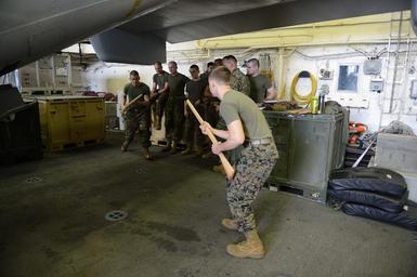 | Keywords: USS Mesa Verde operations 140218-N-BD629-061.jpg en U S Marines assigned to the 22nd Marine Expeditionary Unit conduct bayonet training as part of the Marine Corps Martial Arts Program aboard the amphibious transport dock ship USS Mesa Verde LPD 19 Feb 18 2014 in the Atlantic Ocean The ship deployed as part of the Bataan Amphibious Ready Group in the U S 5th and 6th Fleet areas of responsibility U S Navy photo by Mass Communication Specialist 2nd Class Shannon M Smith/Released 2014-02-18 Petty Officer 2nd Class Shannon Smith https //www dvidshub net/image/1175611 140218-N-BD629-061 2014-02-27 10 02 USS MESA VERDE LPD 19 AT SEA PD-USGov-Military-Navy 22nd Marine Expeditionary Unit USS Mesa Verde LPD-19 Images from DoD uploaded by Fæ |