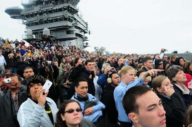 | Keywords: USS Nimitz Friends and Family Day Cruise 090321-N-ND508-014.jpg en Crew members aboard the aircraft carrier USS Nimitz and their guests observe an air show from the flight deck during a Friends and Family Day Cruise Friends and Family Day Cruise is a community outreach event held underway to give family and friends a chance to experience life aboard a U S Navy ship Unit Defense Imagery Management Operations Center DVIDS Tags DIMOC; USS Nimitz; U S Navy; DVIDS Bulk Import 2009-03-21 CVN 68 https //www dvidshub net/image/1275742/uss-nimitz-friends-and-family-day-cruise 090321-N-ND508-014 2014-04-26 15 53 USS NIMITZ AT SEA PD-USGov-Military-Navy USS Nimitz CVN-68 Images from DoD uploaded by Fæ |