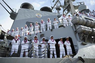 | Keywords: USS O'Kane (DDG 77) arrives at Joint Base Pearl Harbor-Hickam 141205-N-QG393-101.jpg en Sailors aboard the Arleigh Burke-class guided-missile destroyer USS O'Kane DDG 77 man the rails as the ship arrives at Joint Base Pearl Harbor-Hickam from a nine-month deployment to the Arabian Gulf and western Pacific Ocean The ship and crew assigned to Destroyer Squadron DESRON 31 conducted good will activities with partner nations along with various presence operations with two carrier strike groups during the ship's deployment U S Navy photo by Mass Communication Specialist 2nd Class Tiarra Fulgham/Released 2014-12-05 Petty Officer 2nd Class Tiarra Fulgham https //www dvidshub net/image/1688495 141205-N-QG393-101 2014-12-05 18 15 JOINT BASE PEARL HARBOR-HICKAM HI US PD-USGov-Military-Navy 2014 in Pearl Harbor Aboard USS O'Kane DDG-77 USS O'Kane DDG-77 at Pearl Harbor USS O'Kane DDG-77 Images from DoD uploaded by Fæ |