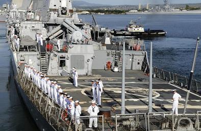 | Keywords: USS Paul Hamilton heads out on deployment DVIDS345126.jpg en Sailors assigned to the guided-missile destroyer USS Paul Hamilton man the rails as the ship departs Joint Base Pearl Harbor-Hickam for an independent deployment to the Middle East and western Pacific Ocean Paul Hamilton is deploying under the Middle Pacific Surface Combatant deployment concept in which Hawaii-based ships deploy to support operations in the U S 5th and 7th Fleet areas of responsibility 2010-11-30 Petty Officer 2nd Class Mark Logico https //www dvidshub net/image/345126 101130-N-+++++-012 2010-12-01 17 36 PEARL HARBOR HI US PD-USGov-Military-Navy 2010 in Pearl Harbor USS Paul Hamilton DDG-60 at Pearl Harbor Images from DoD uploaded by Fæ |