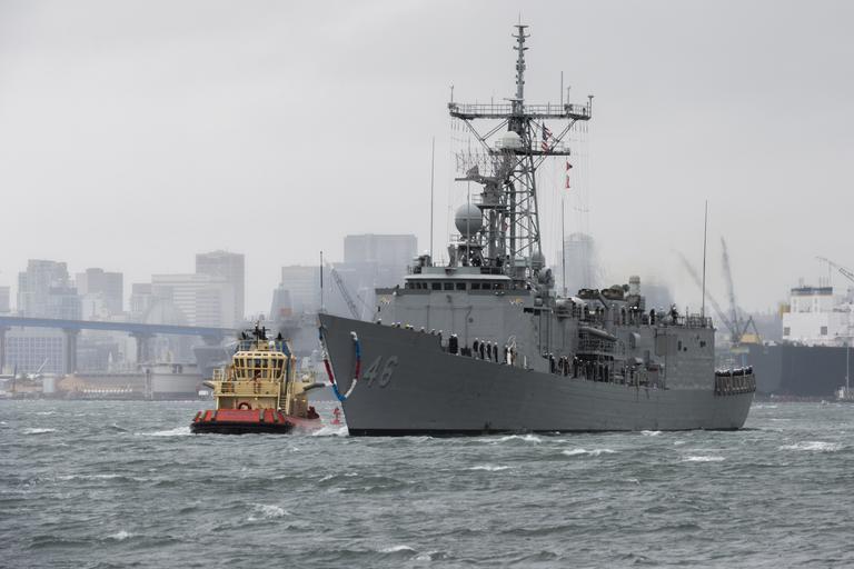 | Keywords: USS Rentz homecoming. 140228-N-YW024-076.jpg en The guided-missile frigate USS Rentz FFG 46 transits San Diego Bay Deployed since July 25 2013 the crew of Rentz in conjunction with Helicopter Anti-Submarine Squadron Light HSL 49 and U S Coast Guard law enforcement detachments disrupted four shipments of cocaine totaling nearly 2 000 kilograms in international waters of the Eastern Pacific Ocean off the coast of Central and South America as part of Operation Martillo U S Navy photo by Mass Communication Specialist 3rd Class Katarzyna Kobiljak/Released 2014-02-28 Petty Officer 3rd Class Katarzyna Kobiljak https //www dvidshub net/image/1181001 140228-N-YW024-076 2014-03-07 03 46 NPASE WEST AT SEA PD-USGov-Military-Navy Operation Martillo United States Coast Guard Law Enforcement Detachment Images from DoD uploaded by Fæ |