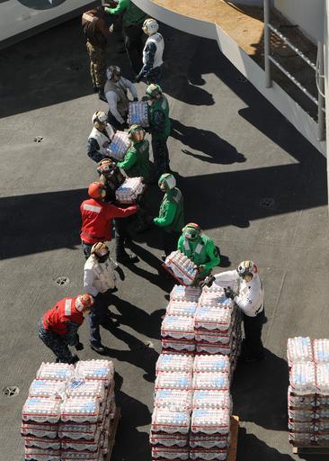 | Keywords: USS Ronald Reagan Action DVIDS338446.jpg en Sailors assigned to the aircraft carrier USS Ronald Reagan and embarked Carrier Air Wing 14 unload cases of water off of a C-2A Greyhound from Fleet Logistics Combat Support Squadron 30 Ronald Reagan was diverted from its current training maneuvers at the direction of Commander U S Third Fleet and at the request of the U S Coast Guard to a position south near the Carnival cruise ship C/V Splendor to facilitate the delivery of 4 500 pounds of supplies to the cruise ship Early Monday CV Splendor reported it was dead in the water 150 nautical miles southwest of San Diego 2010-11-09 CVN 76 https //www dvidshub net/image/338446 101109-N-+++++-286 2010-11-10 05 57 ABOARD USS RONALD REAGAN AT SEA PD-USGov-Military-Navy Grumman C-2 Greyhound Bottled water Images from DoD uploaded by Fæ 2010 Carnival Splendor fire and relief efforts |