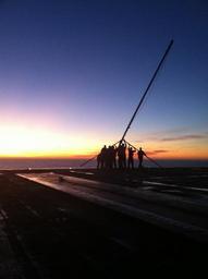 | Keywords: USS Ronald Reagan Action DVIDS340062.jpg en Sailors raise the jackstaff on the bow of the aircraft carrier USS Ronald Reagan following a Scrub Exercise A SCRUBEX is necessary to clean salt water spray off the skin of the ship to prevent corrosion Ronald Reagan is underway preparing for an upcoming deployment 2010-11-14 Photo by Petty Officer 3rd Class Alexander Tidd https //www dvidshub net/image/340062 101114-N-+++++-037 2010-11-15 05 32 ABOARD USS RONALD REAGAN AT SEA PD-USGov-Military-Navy Flight deck maintenance aboard USS Ronald Reagan CVN-76 Images from DoD uploaded by Fæ |