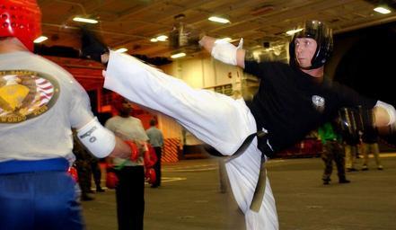 Keywords: uss ronald reagan aircraft carrier men exercise kick gym ship military navy