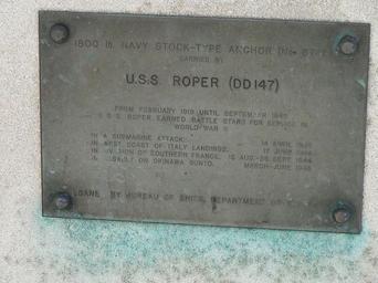 | Keywords: USS Roper anchor plaque.JPG en This is the anchor plaque that accompanies the USS Roper's anchor on the MIT campus 2011-03-26 http //commons wikimedia org/wiki/File USS_Roper_anchor_plaque_-_DSC00248 JPG Daderot cc-zero Uploaded with UploadWizard Wickes class destroyers Plaques in MIT Anchors at MIT |