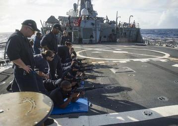 | Keywords: USS STOUT (DDG 55) DEPLOYMENT 2016 161107-N-GP524-380.jpg en 161107-N-GP524-380 ATLANTIC OCEAN Nov 7 2016 Sailors assigned to the guided-missile destroyer USS Stout DDG 55 fire M4 rifles during a live-fire exercise Stout deployed as part of the Eisenhower Carrier Strike Group is supporting maritime security operations and theater security cooperation efforts U S Navy photo by Petty Officer 3rd Class Bill Dodge Unit Navy Media Content Services DVIDS Tags SOUDA BAY; SAR; Search and Rescue; formation; ocean; transit; Bahrain; RAS; USNS Pecos; GQ; general quarters; Arleigh Burke-class; America; underway; CIWS; 6th Fleet; Greece; guided-missile destroyer; Manama ; forward deployed; Memorial Day; USS Stout DDG 55 ; ship; SUEZ CANAL; Navy; COMREL; Sailor; community relations; destroyer; replenishment-at-sea; U S Navy; 5th Fleet; deployment; USS Carney ; MC; Stout; USS Stout; DDG 55; Lt Michael Murphy; NMCS; DVIDS Bulk Import; Mass Communication Specialist 3rd Class Bill Dodge; MC3 Bill Dodge; Murph Challenge; ARGONAUT 2016; Sailors giving back 2016-11-07 Petty Officer 3rd Class William Dodge https //www dvidshub net/image/2989460/uss-stout-ddg-55-deployment-2016 161107-N-GP524-380 2016-11-15 01 55 ATLANTIC OCEAN PD-USGov-Military-Navy Manama USS Stout DDG-55 M4 carbine Images from DoD uploaded by Fæ |