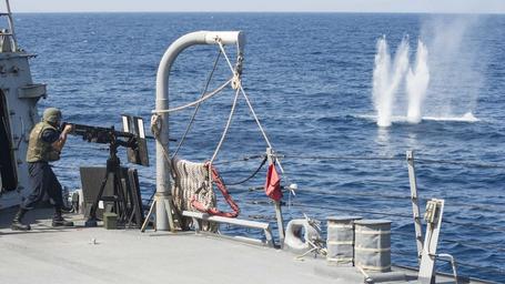 | Keywords: USS STOUT (DDG 55) DEPLOYMENT 2016 161015-N-GP524-048.jpg en 161015-N-GP524-048 ARABIAN GULF Oct 15 2016 Petty Officer 2nd Class Jesus Salazar fires a 50-caliber machine gun from aboard the guided-missile destroyer USS Stout DDG 55 during a live-fire exercise Salazar serves as a personnel specialist on board Stout and is also a member of the small craft attack team Stout deployed as part of the Eisenhower Carrier Strike Group is supporting maritime security operations and theater security cooperation efforts in the U S 5th Fleet area of operations U S Navy photo by Petty Officer 3rd Class Bill Dodge Unit Navy Media Content Services DVIDS Tags SAR; Search and Rescue; formation; ocean; transit; Bahrain; RAS; USNS Pecos ; GQ; general quarters; Arleigh Burke-class; America; underway; CIWS; 6th Fleet; guided-missile destroyer; Manama ; forward deployed; Memorial Day; USS Stout DDG 55 ; ship; SUEZ CANAL; Navy; COMREL; Sailor; community relations; destroyer; replenishment-at-sea; U S Navy; 5th Fleet; deployment; MC; Stout; USS Stout; DDG 55; Lt Michael Murphy; NMCS; DVIDS Bulk Import; Mass Communication Specialist 3rd Class Bill Dodge; MC3 Bill Dodge; Murph Challenge; ARGONAUT 2016; Sailors giving back 2016-10-15 Petty Officer 3rd Class William Dodge https //www dvidshub net/image/2927310/uss-stout-ddg-55-deployment-2016 161015-N-GP524-048 2016-10-18 00 31 PERSIAN GULF PD-USGov-Military-Navy Manama USS Stout DDG-55 Images from DoD uploaded by Fæ |