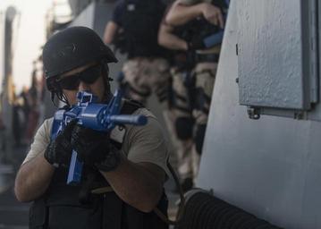 | Keywords: USS STOUT (DDG 55) VISIT, BOARD, SEARCH AND SEIZURE DEPLOYMENT 2016 160812-N-GP524-549.jpg en 160812-N-GP524-549 ARABIAN GULF Aug 12 2016 Sonar Technician Surface 2nd Class Dimitrius Romero assigned to the guided-missile destroyer USS Stout DDG 55 conducts a visit board search and seizure training exercise aboard the Cyclone-class coastal patrol ship USS Squall PC 7 Stout deployed as part of the Eisenhower Carrier Strike Group is supporting maritime security operations and theater security cooperation efforts in the U S 5th Fleet area of operations U S Navy photo by Mass Communication Specialist 3rd Class Bill Dodge/Released Unit Navy Media Content Services DVIDS Tags SAR; Search and Rescue; formation; ocean; transit; Bahrain; RAS; USNS Pecos ; GQ; general quarters; Arleigh Burke-class; America; underway; CIWS; 6th Fleet; guided-missile destroyer; Manama ; forward deployed; Memorial Day; USS Stout DDG 55 ; ship; SUEZ CANAL; Navy; COMREL; Sailor; community relations; destroyer; replenishment-at-sea; U S Navy; 5th Fleet; deployment; MC; Stout; USS Stout; DDG 55; Lt Michael Murphy; NMCS; DVIDS Bulk Import; Mass Communication Specialist 3rd Class Bill Dodge; MC3 Bill Dodge; Murph Challenge; ARGONAUT 2016; Sailors giving back 2016-08-12 Petty Officer 3rd Class William Dodge https //www dvidshub net/image/2794380/uss-stout-ddg-55-visit-board-search-and-seizure-deployment-2016 160812-N-GP524-549 2016-08-16 00 09 PERSIAN GULF PD-USGov-Military-Navy Manama USS Stout DDG-55 Images from DoD uploaded by Fæ |
