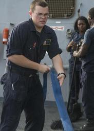 | Keywords: USS STOUT (DDG 55) DEPLOYMENT 2016 160728-N-GP524-144.jpg en 160728-N-GP524-144 ARABIAN GULF July 28 2016 Machinist Mate Fireman Dylan Oakes secures a fire hose during a freshwater wash down aboard the guided-missile destroyer USS Stout DDG 55 Stout deployed as part of the Eisenhower Carrier Strike Group is supporting maritime security operations and theater security cooperation efforts in the U S 5th Fleet area of operations U S Navy photo by Mass Communication Specialist 3rd Class Bill Dodge/Released Unit Navy Media Content Services DVIDS Tags SAR; Search and Rescue; formation; ocean; transit; Bahrain; RAS; USNS Pecos ; GQ; general quarters; Arleigh Burke-class; America; underway; CIWS; 6th Fleet; guided-missile destroyer; Manama ; forward deployed; Memorial Day; USS Stout DDG 55 ; ship; SUEZ CANAL; Navy; COMREL; Sailor; community relations; destroyer; replenishment-at-sea; U S Navy; 5th Fleet; deployment; MC; Stout; USS Stout; DDG 55; Lt Michael Murphy; NMCS; DVIDS Bulk Import; Mass Communication Specialist 3rd Class Bill Dodge; MC3 Bill Dodge; Murph Challenge; ARGONAUT 2016; Sailors giving back 2016-07-28 Petty Officer 3rd Class William Dodge https //www dvidshub net/image/2766672/uss-stout-ddg-55-deployment-2016 160728-N-GP524-144 2016-08-04 00 19 PERSIAN GULF PD-USGov-Military-Navy Manama USS Stout DDG-55 Images from DoD uploaded by Fæ |
