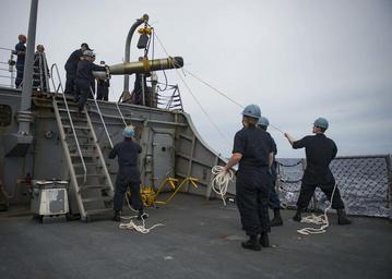| Keywords: USS STOUT (DDG 55) DEPLOYMENT 2016 161108-N-GP524-189.jpg en 161108-N-GP524-189 ATLANTIC OCEAN Nov 8 2016 Sailors assigned to the guided-missile destroyer USS Stout DDG 55 transport an M-46 torpedo Stout deployed as part of the Eisenhower Carrier Strike Group is supporting maritime security operations and theater security cooperation efforts U S Navy photo by Petty Officer 3rd Class Bill Dodge Unit Navy Media Content Services DVIDS Tags SOUDA BAY; SAR; Search and Rescue; formation; ocean; transit; Bahrain; RAS; USNS Pecos; GQ; general quarters; Arleigh Burke-class; America; underway; CIWS; 6th Fleet; Greece; guided-missile destroyer; Manama ; forward deployed; Memorial Day; USS Stout DDG 55 ; ship; SUEZ CANAL; Navy; COMREL; Sailor; community relations; destroyer; replenishment-at-sea; U S Navy; 5th Fleet; deployment; USS Carney ; MC; Stout; USS Stout; DDG 55; Lt Michael Murphy; NMCS; DVIDS Bulk Import; Mass Communication Specialist 3rd Class Bill Dodge; MC3 Bill Dodge; Murph Challenge; ARGONAUT 2016; Sailors giving back 2016-11-08 Petty Officer 3rd Class William Dodge https //www dvidshub net/image/2989223/uss-stout-ddg-55-deployment-2016 161108-N-GP524-189 2016-11-15 01 41 ATLANTIC OCEAN PD-USGov-Military-Navy Manama USS Stout DDG-55 Images from DoD uploaded by Fæ |