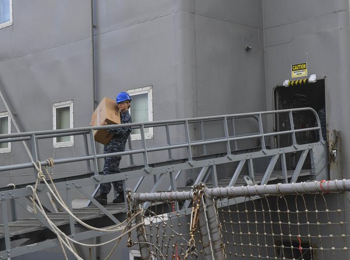 | Keywords: USS The Sullivans is prepared for Hurricane Mathew. (30159054376).jpg JACKSONVILLE Fla Oct 5 2016 Petty Officer 3rd class Brittanie Murphy assigned to the guided-missile destroyer USS The Sullivans DDG 68 moves dry storage from a barge to The Sullivans in preparation for Hurricane Mathew U S Navy photo by Seaman Michael Lopez/Released 161005-N-TP832-013 Join the conversation http //www navy mil/viewGallery asp www navy mil/viewGallery asp http //www facebook com/USNavy www facebook com/USNavy http //www twitter com/USNavy www twitter com/USNavy navylive dodlive mil pinterest com plus google com https //www flickr com/photos/usnavy/30159054376/ USS The Sullivans is prepared or Hurricane Mathew 2016-10-05 12 28 https //www flickr com/people/56594044 N06 Official U S Navy Page from United States of America Seaman Michael Lopez/U S Navy Attribution License IPTC Caption-Abstract U S Navy photo PD-USGov-Military-Navy Official U S Navy Imagery https //flickr com/photos/56594044 N06/30159054376 2016-10-10 21 12 15 cc-by-2 0 161005-N-TP832-013 Navy Files from the U S Navy Flickr stream Hurricane Matthew 2016 October 2016 in Florida Photographs taken on 2016-10-05 USS The Sullivans DDG-68 Taken with Nikon D5 |