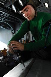 | Keywords: USS Theodore Roosevelt operations 150816-N-CQ428-235.jpg en 150816-N-CQ428-235 ARABIAN GULF - Aviation Structural Mechanic 3rd Class Jordan Austin from Renton Wash reinforces the wing flap on a F/A-18E Super Hornet in the hangar bay aboard the aircraft carrier USS Theodore Roosevelt Theodore Roosevelt is deployed in the U S 5th Fleet area of operations supporting Operation Inherent Resolve strike operations in Iraq and Syria as directed maritime security operations and theater security cooperation efforts in the region <br>Unit Navy Media Content Services 2015-08-16 Aug 16 2015 https //www dvidshub net/image/2130427/uss-theodore-roosevelt-operations 150816-N-CQ428-235 2015-08-19 19 27 USS THEODORE ROOSEVELT PERSIAN GULF PD-USGov-Military-Navy F/A-18E Super Hornet USS Theodore Roosevelt CVN-71 Images from DoD uploaded by Fæ |