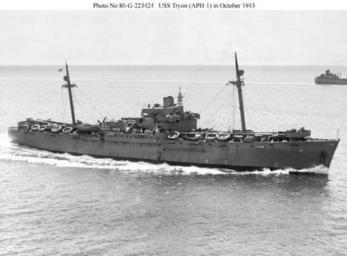 | Keywords: USS Tryon (APH-1).jpg USS Tryon APH-1 underway Her funnel has been reconfigured and enlarged following wind tunnel tests to keep smoke off the after decks She has also received a radar mast but does not yet have Welin davits US National Archives photo 80-G-223424 a US Navy photo now in the collections of the US National Archives Photo from US Amphibious Ships and Craft by Norman Friedman See http //www navsource org/archives/09/24/2401 htm 1943-10 PD-USGov-Military-Navy DEFAULTSORT Tryon Ships built in Oakland California Ships built in 1941 World War II auxiliary ships of the United States Transports of the United States Navy |