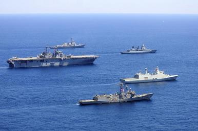 | Keywords: USS Wasp (LHD-1) with multi-national escorts underway 2012.jpg en The U S Navy amphibious assault ship USS Wasp LHD-1 alongside coalition partner ships during a sailing event while participating in the War of 1812 fleet exercise The exercise wa a week-long multi-national exercise involving 19 ships from the United States Canada the United Kingdom Germany Norway Denmark Brazil and Portugal and is designed to increase interoperability with allied nations improve tactical prowess and certification of participating units Besides Wasp the following ships are visible front to back USS Halyburton FFG-40 the Danish support ship HDMS Esbern Snare L17 the German frigate Hessen F 221 and USS Gravely DDG-107 2012-06-27 120627-N-NR998-738 Navy http //www navy mil/view_image asp id 126722 U S Navy photo by Mass Communication Specialist Petty Officer 2nd Class Gretchen M Albrecht PD-USGov-Military-Navy General views of USS Wasp LHD-1 USS Halyburton FFG-40 USS Gravely DDG-107 F221 Hessen ship 2006 L17 Esbern Snare ship 2005 International groups of naval ships Bundeswehr in 2012 |