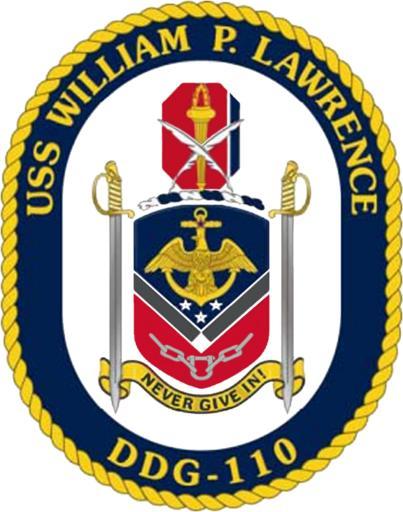 | Keywords: USS William P. Lawrence.png en Emblem of teh USS William P Lawrence DDG-110 2011-05-25 United States Army Institute of Heraldry Member of the Armed Forces of the United States PD-USGov Shield Dark blue is the color traditionally associated with the Navy representing the sea The dark gray split chevron on the white chevron alludes to VADM Lawrence ™s mission to lead a flak suppression section during a raid in North Vietnam Upon taking enemy fire his aircraft tail section separated forcing him to eject where he became a prisoner in Hanoi illustrated by the shackbolt The six chain links indicate the years spent as a prisoner of war The anchor denotes naval strength The golden eagle highlights VADM Lawrence as a man of courage to resist his captors while suffering torture and beatings The combination of the eagle and anchor symbolize the VADM ™s career as a Naval aviator suggesting his service as a test pilot becoming the first to fly twice the speed of sound and final candidate for the Mercury space program The stars represent VADM Lawrence ™s strength of character implying the award of two Bronze stars and the Purple Heart The three silver stars represent the highest rank achieved command of the 3rd Fleet as well as the three Silver Stars awarded for exceptional heroism CREST The Aegis shield emphasizes the modern weaponry and the ARLEIGH BURKE class to which the ship belongs The shield reflects the colors of the Tennessee state flag the birthplace of VADM Lawrence The golden enflamed torch represents achievement and enlightenment when VADM Lawrence created the Midshipmen honor concept as the President of his class at United States Naval Academy in 1950 and his remarkable performance as a scholar/athlete The quills pens allude to knowledge signifying his appointment as Superintendent of the Naval Academy and the poem which he mentally composed while in solitary confinement as a prisoner of war which was adopted as the Tennessee state poem in 1973 MOTTO Never give in SUPPORTERS The officer swords honor the proud military heritage of the Lawrence family and their service to the United States of America Uploaded with UploadWizard United States Navy destroyer emblems 110 USS William P Lawrence DDG-110 |