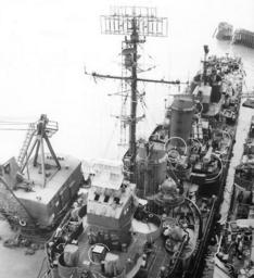 | Keywords: USS Young (DD-580) bridge, fire control, mast.jpg USS Young DD-580 at the Mare Island Navy Yard California 30 July 1945 Note details of her open bridge White outlines mark recent alterations to the ship http //www history navy mil/photos/images/i02000/i02859 jpg Naval Historical Center cropped All information on this site is in the public domain and may be distributed or copied unless otherwise specified Use of appropriate byline/photo/image credits is requested PD-USGov-Military-Navy Mark 37 Gun Fire Control System USS Young DD-580 |