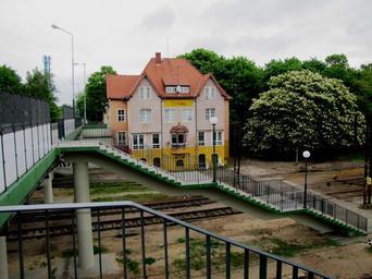 Keywords: USTKA. AB-003.JPG pl PKP Dworzec Kolejowy widziany z wiaduktu nad torami 2013-05-21 10 17 50 own Antekbojar cc-zero Uploaded with UploadWizard Ustka train station