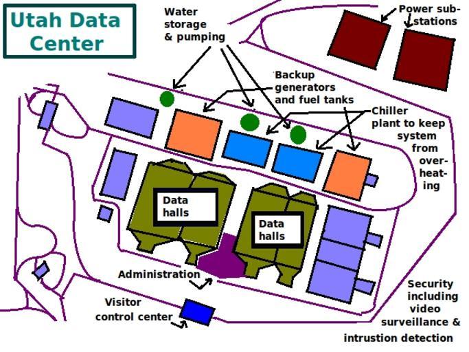 | Keywords: Utah Data Center of the NSA in Bluffdale Utah.png Bluffdale Utah It will cost 2 billion and collect so-called yottobytes of information; a yottobyte is a septillion bytes 10 24 According to one report It ™s a state-of-the-art facility designed to support the intelligence community in its mission to in turn enable and protect the nation ™s cybersecurity It will collect a wide range of data about people to prevent terrorism In addition it will have powerful computers built to decipher encrypted information 2012-06-24 own Tomwsulcer Note the diagram was based on a sketch in Wired Magazine<br>thumb Utah_Data_Center_of_the_NSA_in_Bluffdale_Utah_vectorized svg cc-zero Uploaded with UploadWizard Utah Data Center |