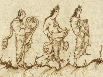 | Keywords: Utrechts-Psalter PSALM-149-PSALM-150 timpanum drum psalterio.jpg en From the Utrecht Psalter from the left a psaltery psalterio in Latin a timbrel tympano in Latin and another psaltery The psalteries have different modern names likely cithars lyres or harps The left hand instrument was labeled a rotta in the 1911 Encyclopedia Britannica Praising God with music c 850 a d http //psalter library uu nl/ author other versions http //psalter library uu nl/page p 172 res 3 x 0 y 731 PD-Art Utrecht Psalter Instruments in art Percussion instruments Percussion instruments in art Harps Harps in art Lyres Lyres in art Lyre family instruments Psaltery Worship Frame drums Anglo-Saxon art |