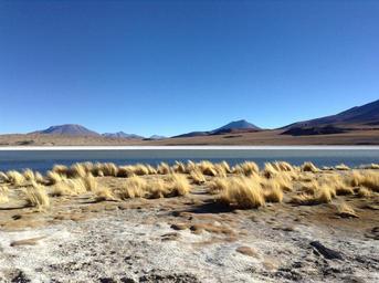 Keywords: uyuni landscape nature lake bolivia sky mountains andes grass outdoors remote water horizon idyllic clear terrain travel dry