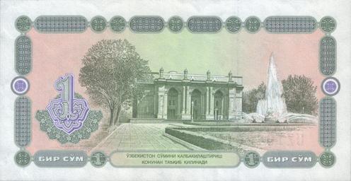 | Keywords: UZS1 1994 back.jpg 1 cум узбекистана 1994 1 som of Uzbekistan 1994 own scan 1994 Цент альный банк Республики Узбекистан The Central bank of the Republic of Uzbekistan Ўзбекистон Республикаси ма казий банки PD-UZ-exempt banknotes Banknotes of Uzbekistan Alisher Navoi Opera and Ballet Theatre Banknotes with a face value of 1 Green banknotes Buildings on banknotes Fountains on banknotes |