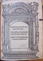 | Keywords: architecture text indoor Pomponii Mflae Geographiae, libri tres. Hermolai Barbari in eundem, integrae castigationes. Index in pomponio contentorum copiosissimus. [texte imprimé] Auteur principal : Pomponius Mela (0001-0099) Auteur Auteur secondaire : Vietor, Hieronymus Imprimeur ; Camers, Johannes (1447-1546) Préfacier etc ; Singrener, Johann Imprimeur ; Zell, Matthäus (1477-1548) Propriétaire précédent Langue : latin. Pays : Autriche, Vienne. Publication : Viennae Pannoniae, per Hieronymum Vietorem Philouallem & Joannem Singrenium de Oeting. Calcographos diligentissimos. Pridie Nonas Septembris. ANNO. M. D. XII. : Description : [12], 38 f. ; in-4 Empreinte du document : m.d. b.e. inus soni (3) 1512 (R) (IRHT) ; 15124 a1 A2 .$11. : a2 A3 7.$a. - a3 a $ : a4 a4 a.c. - b1 b ri : b2 f3 li$veri (STCN) Note : Signature : A6, a6 b-e8 f6. Contient : [Ep. ded. J. Camertis Theobaldo Offenburgensi. Elegidion N. Gerbellii] ; titre dans encadr. gr. s. b. par A traversé d'une flêche, armes impériales gr. s. b. à la fin Note sur la reliure : Demi reliure en peau de truie sur ais de bois, dos à 3 nerfs, traces de 2 fermoirs Note de contenu : Camers, Giovanni Ricuzzi Vellini, dit : Tetrasticon, Index ; Barbaro, Ermolao : Castigationes (f. 29v°-38) ; Gerbelius, Nicolaus, Phorcensis : Elegidion (f. 10v°) Note de provenance : Légué par Matthieu Zell à sa mort en 1548 au Collège Saint-Guillaume (= Collegium Wilhelmitanum) Pomponii Mflae Geographiae, libri tres. Hermolai Barbari in eundem, integrae castigationes. Index in pomponio contentorum copiosissimus. [texte imprimé] Auteur principal : Pomponius Mela (0001-0099) Auteur Auteur secondaire : Vietor, Hieronymus Imprimeur ; Camers, Johannes (1447-1546) Préfacier etc ; Singrener, Johann Imprimeur ; Zell, Matthäus (1477-1548) Propriétaire précédent Langue : latin. Pays : Autriche, Vienne. Publication : Viennae Pannoniae, per Hieronymum Vietorem Philouallem & Joannem Singrenium de Oeting. Calcographos diligentissimos. Pridie Nonas Septembris. ANNO. M. D. XII. : Description : [12], 38 f. ; in-4 Empreinte du document : m.d. b.e. inus soni (3) 1512 (R) (IRHT) ; 15124 a1 A2 .$11. : a2 A3 7.$a. - a3 a $ : a4 a4 a.c. - b1 b ri : b2 f3 li$veri (STCN) Note : Signature : A6, a6 b-e8 f6. Contient : [Ep. ded. J. Camertis Theobaldo Offenburgensi. Elegidion N. Gerbellii] ; titre dans encadr. gr. s. b. par A traversé d'une flêche, armes impériales gr. s. b. à la fin Note sur la reliure : Demi reliure en peau de truie sur ais de bois, dos à 3 nerfs, traces de 2 fermoirs Note de contenu : Camers, Giovanni Ricuzzi Vellini, dit : Tetrasticon, Index ; Barbaro, Ermolao : Castigationes (f. 29v°-38) ; Gerbelius, Nicolaus, Phorcensis : Elegidion (f. 10v°) Note de provenance : Légué par Matthieu Zell à sa mort en 1548 au Collège Saint-Guillaume (= Collegium Wilhelmitanum) |