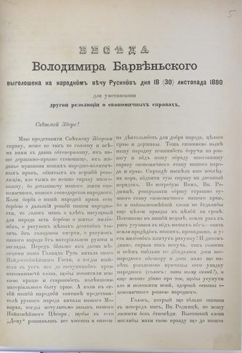 | Keywords: V. Barvinskiy speech at Rusins' viche 1261(4).jpg  Володими Ба вінський П омова Володими а Ба виньского виголошена у на одному вічу Русинов 18 листопада 1880 для умотивовання д угої  езолюції п о економичні сп ави Львів 1880 С 1 З особистої бібліотеки І Ф анка V Barvinskiy speech at Rusins' viche about economic questions on November 18 1880 p 1 From I Franko personal Library 1880 Institution Shevchenko Institute of Literature Digital Collection PD-old-70-1923 Franko Personal Library Libraries in Ukraine Collections of books in libraries in Ukraine Shevchenko Institute of Literature Uploaded with VicuñaUploader |