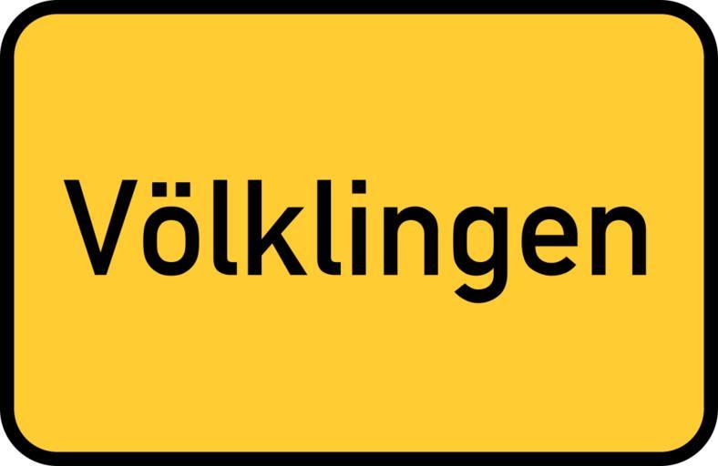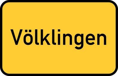 Keywords: völklingen saarland ironworks town sign city limits sign entry sign gateway sign traffic road sign street sign directory yellow germany direction unesco world heritage site industrial heritage