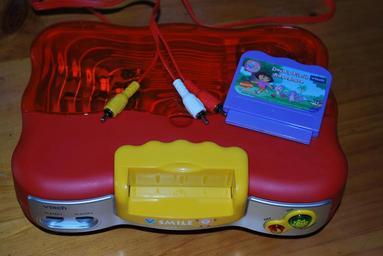 Keywords: V-Smile Top.JPG en 2008 V-Smile with the 'Cars' colour scheme own Xrobau trademark cc-by-3 0 VTech 2000s home game consoles