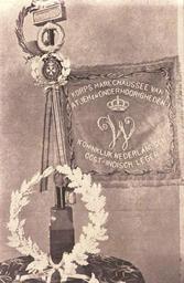 Keywords: Vaandel van het corps marechaussees.jpg en Vaandel marechaussees Eigen Haard nvt 1910 PD-old-100 Eigen Haard Korps Marechaussee te Voet